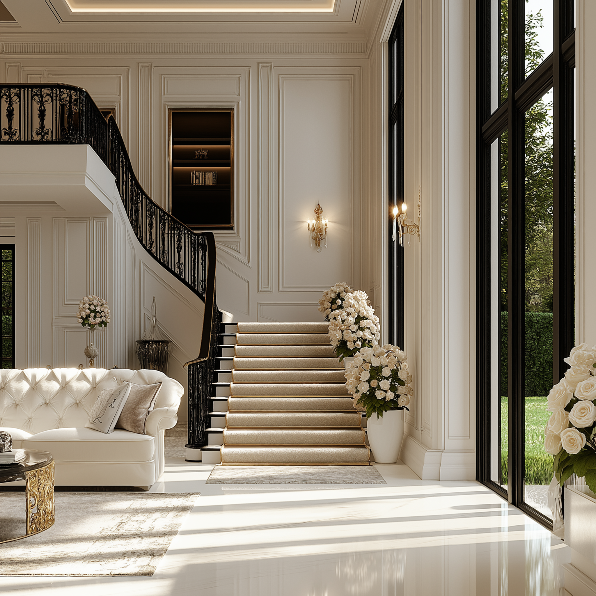 Bathed in sunlight and framed by pristine white roses, The Maison Blanche is a conceptual estate designed to evoke tranquility and timeless charm. Set within the exclusive serenity of Saint-Tropez, the architecture takes cues from classical French proportions, while the interiors speak in a softer, more poetic language. White tones dominate the palette, delicately balanced with brushed gold detailing, gentle curves, and luxurious finishes. The entire home is envisioned as a sanctuary light, fresh, and harmoniously calm.